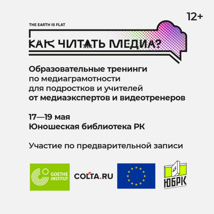 Большой проект приходит в Юношку! 17–19 мая в Юношеской библиотеке состоятся образовательные тренинги по медиаграмотности для школьников 12-17 лет, а также для учителей средней и высшей школы «Как читать медиа?».