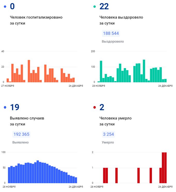 Число умерших от коронавируса увеличилось и составляет 3256 за все время пандемии. Последний раз смертельные исходы фиксировали ровно месяц назад - 26 декабря.