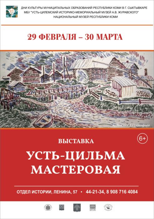 29 февраля в 12.00 в рамках фестивального проекта «Дни культуры муниципальных образований Республики Коми в г. Сыктывкаре» в отделе истории состоится открытие выставки «Усть-Цильма мастеровая». Представит её Усть-Цилемский историко-мемориальный музей А.В. Журавского.