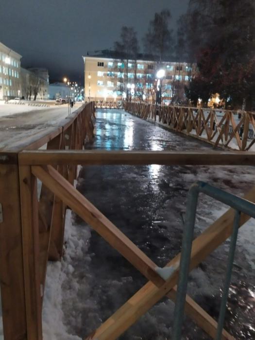 Сейчас идет заливка ледового основания и ведется монтаж деревянного ограждения. Общая площадь катка - 1 500 «квадратов», протяженность ледовых дорожек составит более 300 метров. Также каток будет подсвечен светодиодными гирляндами.